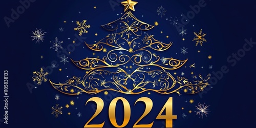 Background Featuring Stylish Vertical Christmas Tree Cutouts Adorned with Golden Decorations and the Year 2024,2025 Perfect for Celebrating Christmas, New Year, and Romantic Occasions, Conveying