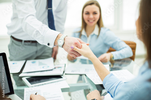 Bank Manager and the customer shake hands after signing a lucrative contract