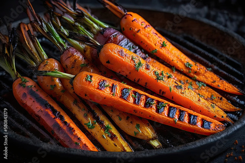 Beer Brats and side dishes, carrots, Chicken and Kebabs, generative artificial intelligence