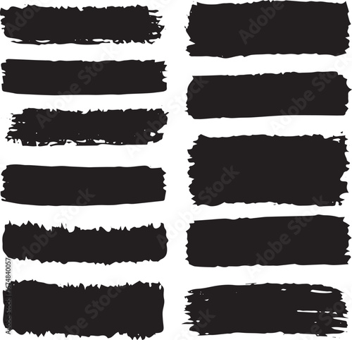 Black Grunge Brush Stroke Rectangles Set – Distressed Ink Texture Shapes for Design