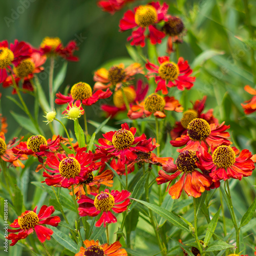 blooming red Echinacea flowers in the garden