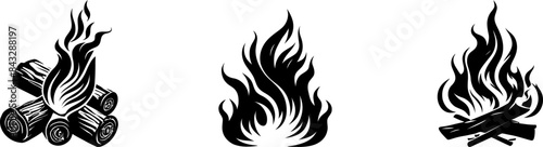 Bonfire icon set .Fire is burning.Fire icon with a logs. . Fire flame vector silhouette.