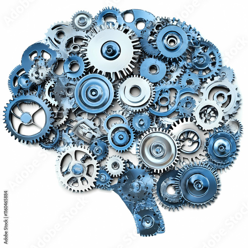 Brain Gears. Brain Thinking Concept, Mechanical Brain, Head Gears - Cognitive Thinking, and Problem Solving