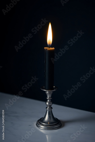 Burning Black Candle in Vintage Brass Holder | Gothic Home Styling