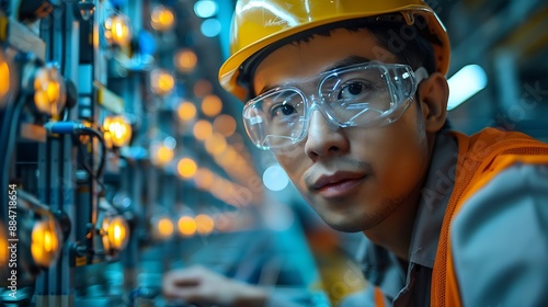 Chinese engineer working on EV car battery cells module in a electric vehicle factory