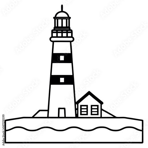 Classic Lighthouse Silhouette , Coastal Navigation Icon