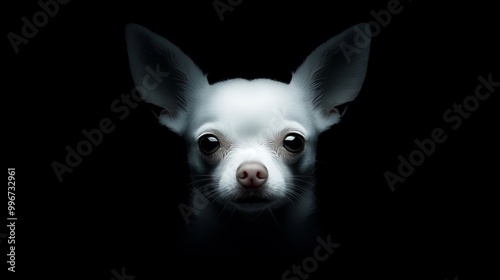 Close-up of a dog's face against a black backdrop, with its head mirrored in the reflection
