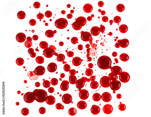 “Cluster of Blood Drops in Random Splash Pattern, PNG”.