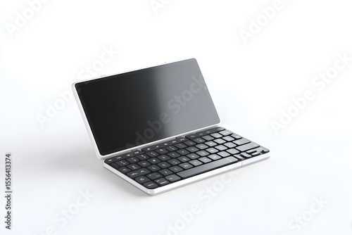 Compact foldable keyboard white background Bluetooth gadget.Portable foldable keyboard with Bluetooth, isolated on white background. Ideal for tech, remote work, minimalist office setups, and digital
