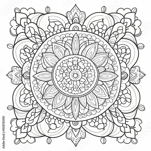 complex Intricate mandala design, featuring complex geometric patterns with with clear, bold lines. white background, coloring book page