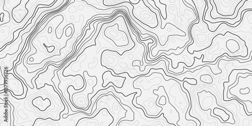 Concept of a conditional geography scheme and the terrain path.The stylized height map of the topographic in contours. Dark stroke on light background colors.Ultra wide. Vector Illustration.