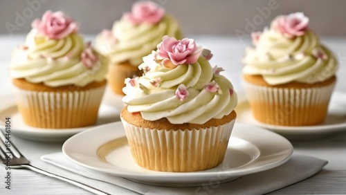 Delicate cupcakes with pink roses ready for a special occasion