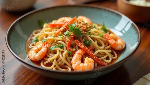 Delicious shrimp and noodle dish ready to be savored