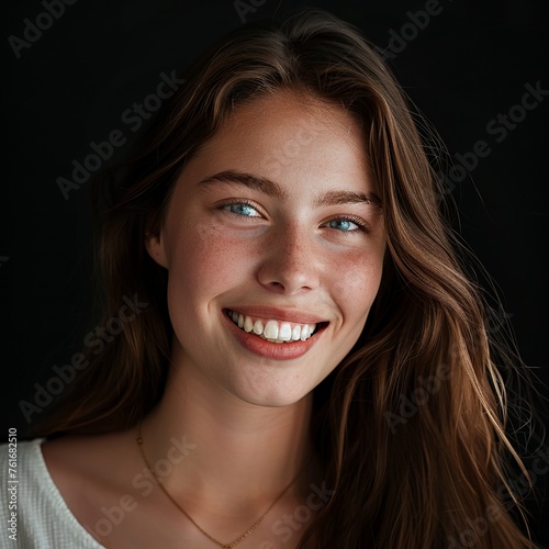Embrace the elegance of a 20-year-old European model showcasing her luscious brunette hair in a skincare portrait. The soft backdrop, luminous filter effect, and cinematic clarity add a touch of soph
