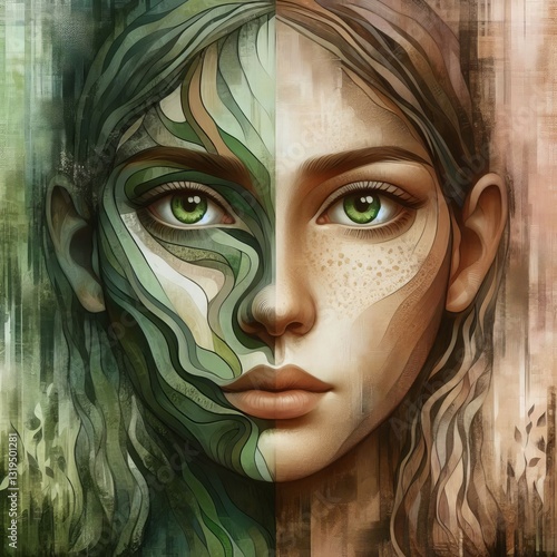 Embracing Change Chameleon: Metaphorical Girl Portrait Shapeshifting