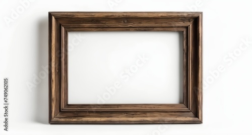 Empty wooden picture frame on white wall