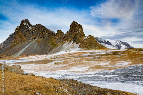 Eystrahorn mountain peaks in afternoon light of Iceland
