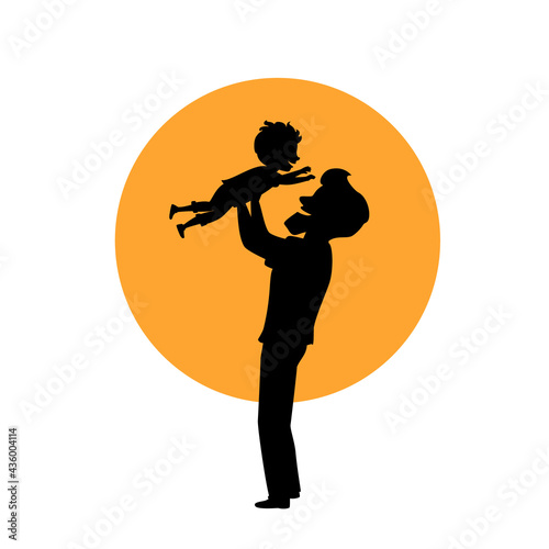 father and son playing, dad lifting up boy in the air, isolated vector illustration silhouette scene