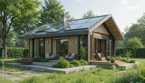 fGreen energy-powered smart house model with a focus on sustainable architecture, designed for efficiency and modern living in small spaces.
