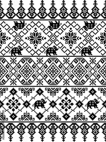 Figure tribal Thai geometric ethnic pattern traditional and elephant design for textured,fabrics,clothing,wrapping,carpet,print,background.