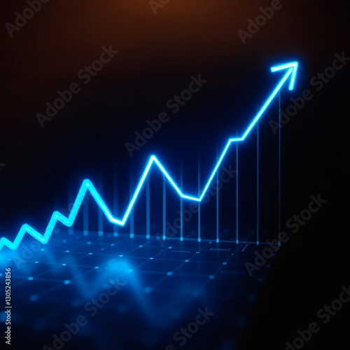financial growth chart with neon blue lines against a dark background | generative AI