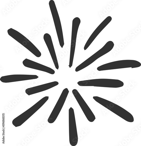 firework doodle line explosion radial sparkler with rays, hand drawn firecracker simple and round decoration