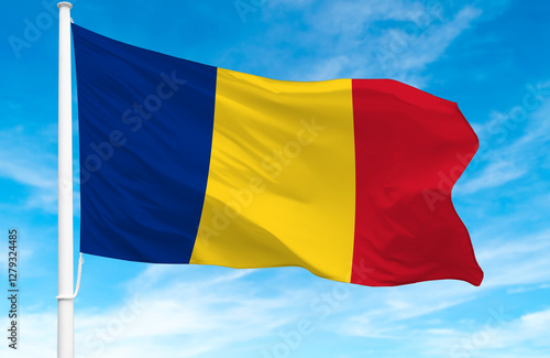 Flagpole with the flag of Romania 3D Rendering