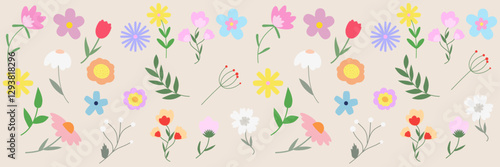 Flat flowers. Cutie flowers pattern. Vector illustration for yours list, postcard, card