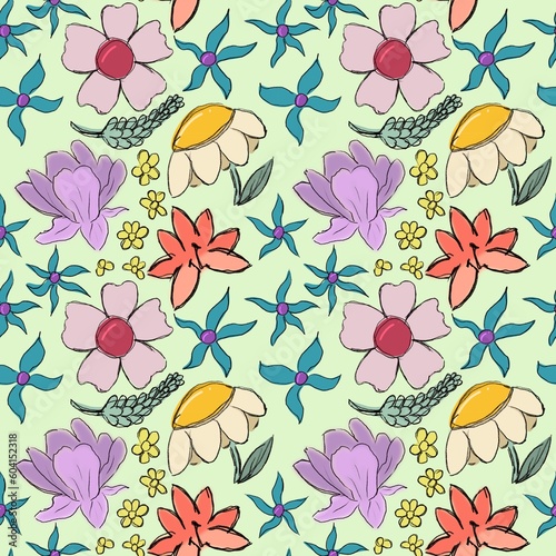 floral seamless pattern on coloured background. Raster 6000x6000 jpeg