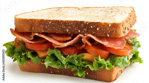 Fresh BLT sandwich with bacon, lettuce, and tomato on whole-grain bread
