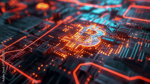 Fusion of a virtual digital economy and cryptocurrency, Electronic circuit seamlessly integrated with the digital currency symbol, Innovative and futuristic atmosphere