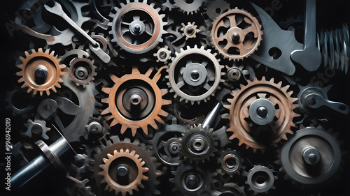 Gear wheels, cogwheels industry mechanism. Engineering concept. AI generated image, ai