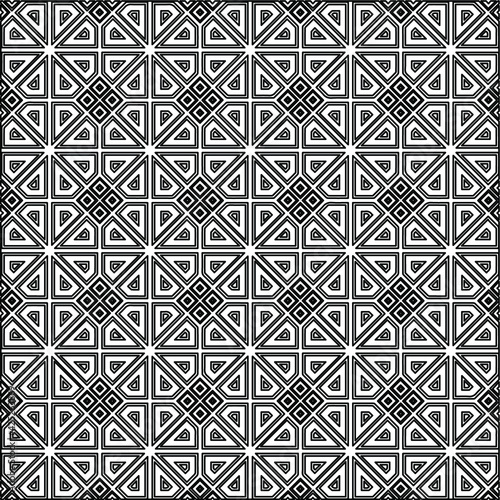 Geometric vector pattern with triangular elements. Seamless abstract ornament for wallpapers and backgrounds. Black and white colors.