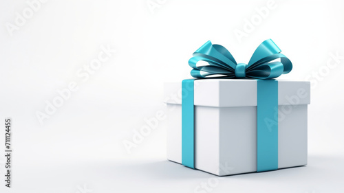 プレゼントの入ったブルーのリボンのボックス gift box with blue ribbon