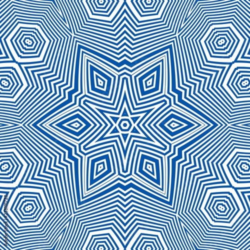 Graphic illustration blue indigo mandala background. Tibetan pattern yoga psychedelic art work. Suitable for background, text and typography.