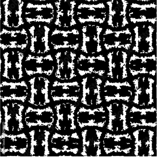 Grunge background with abstract shapes. Black and white texture. Seamless monochrome repeating pattern for decor, fabric, cloth.