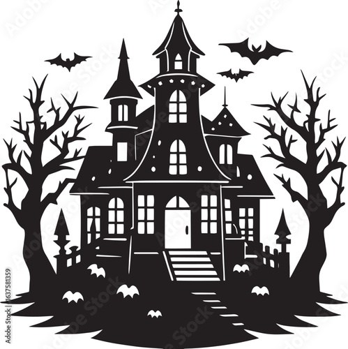 Halloween hunted house silhouette vector icon illustration