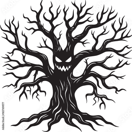 Halloween tree silhouette vector icon, Spooky trees silhouette, Halloween tree vector illustration.