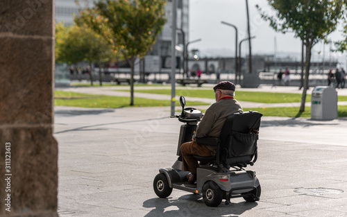 Handicapped Elderly male driving electric car