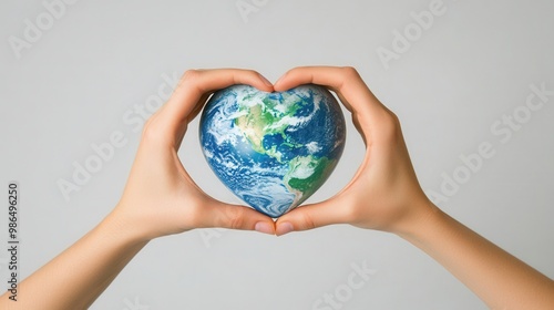 hands forming a heart shape around a small globe, symbolizing love and care for the planet