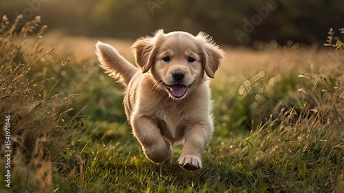 Happy Golden Retriever Puppy Running Outdoors