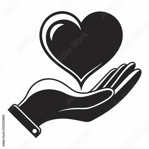 Heart in Hand Icon – Vector Illustration, Clipart, Line Art, and Cartoon Design, Heart in hand icon vector – perfect for clipart, cartoons, line art, and digital designs.
