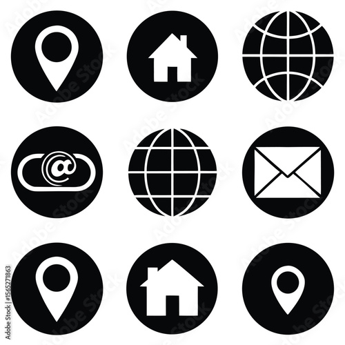 Icon Set for Navigation Home Location Globe Email Phone in Solid and Outlined Styles.