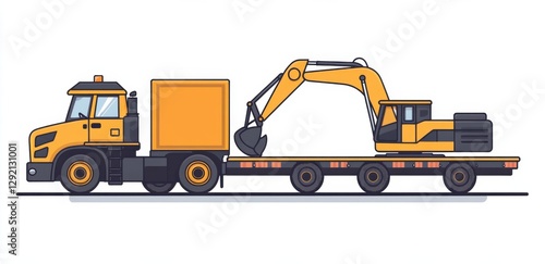 illustration of a red and black truck with a digging arm