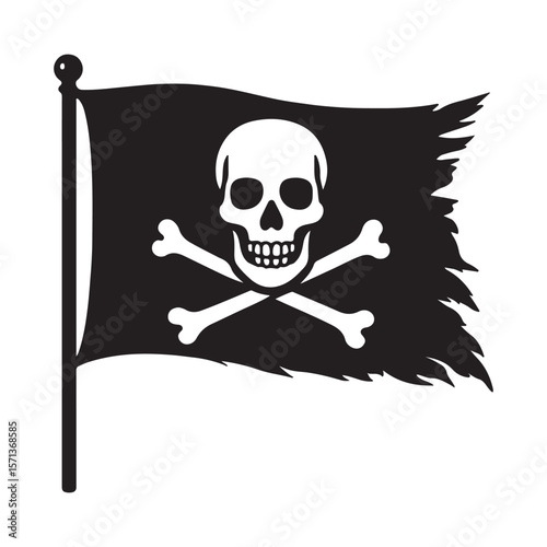 Illustration with Skull and Flag Vintage Style Vector Graphic