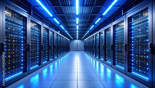 Industrial-Grade Server Room Featuring Backup Power Units, Precision Cooling Systems, Server Racks, Exposed Power Cables, and Ventilation Infrastructure