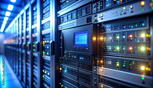 Industrial-Grade Server Room Featuring Backup Power Units, Precision Cooling Systems, Server Racks, Exposed Power Cables, and Ventilation Infrastructure