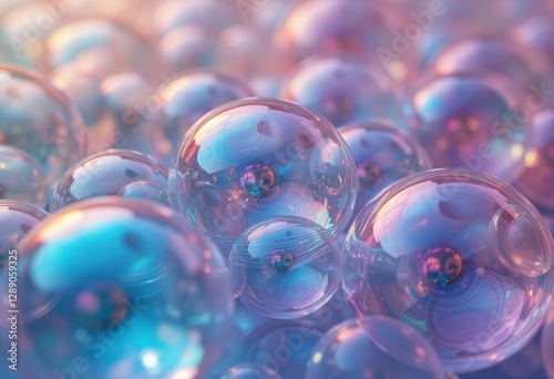 Iridescent soap bubbles with a spectrum of colors reflecting and refracting light