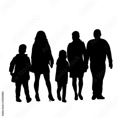 isolated silhouette people with children are walking