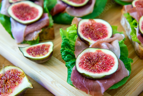 Kanapki z sałatą, szynką dojrzewającą i figami